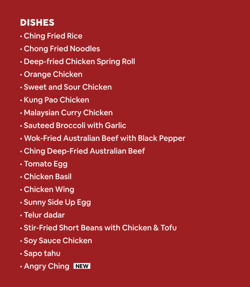 ➤ Ching & Chong - Kemang*Ching & Chong Pacific Century Place isn't available on Grab Food.