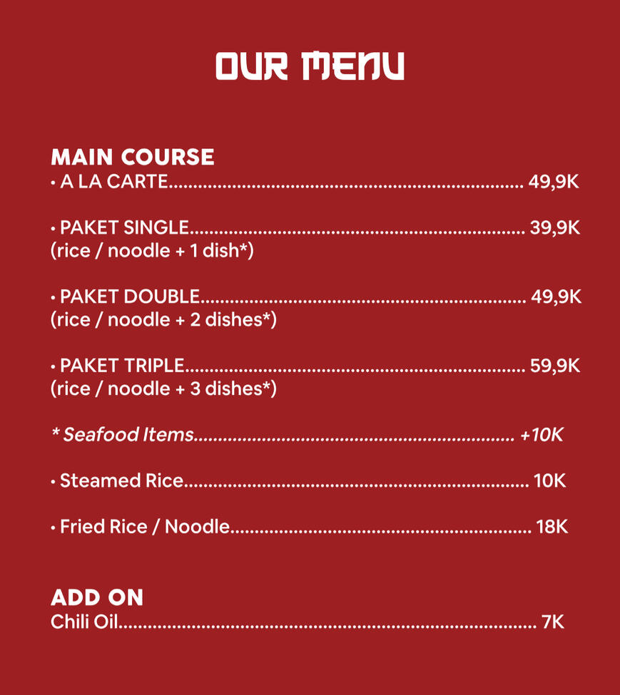 Wide-range Asian cuisine for you and your beloved ones. Reasonable price, tasty and ready to serve you anytime.